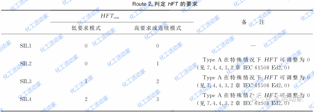 鑒于IEC 61508 Ed2.0的發(fā)布,對(duì)于功能安全結(jié)構(gòu)約束的定義有了新的變化,在IEC 61511-1 Ed2.0中,也將延續(xù)這種變革。因此,在判斷硬件故障裕度(HFT)時(shí)有了更多的選擇。在IEC 61508-2 Ed2.0中有兩種不同的方法,分別為Route1H和Route2H,其判定HFT的要求分別見(jiàn)下表所列。