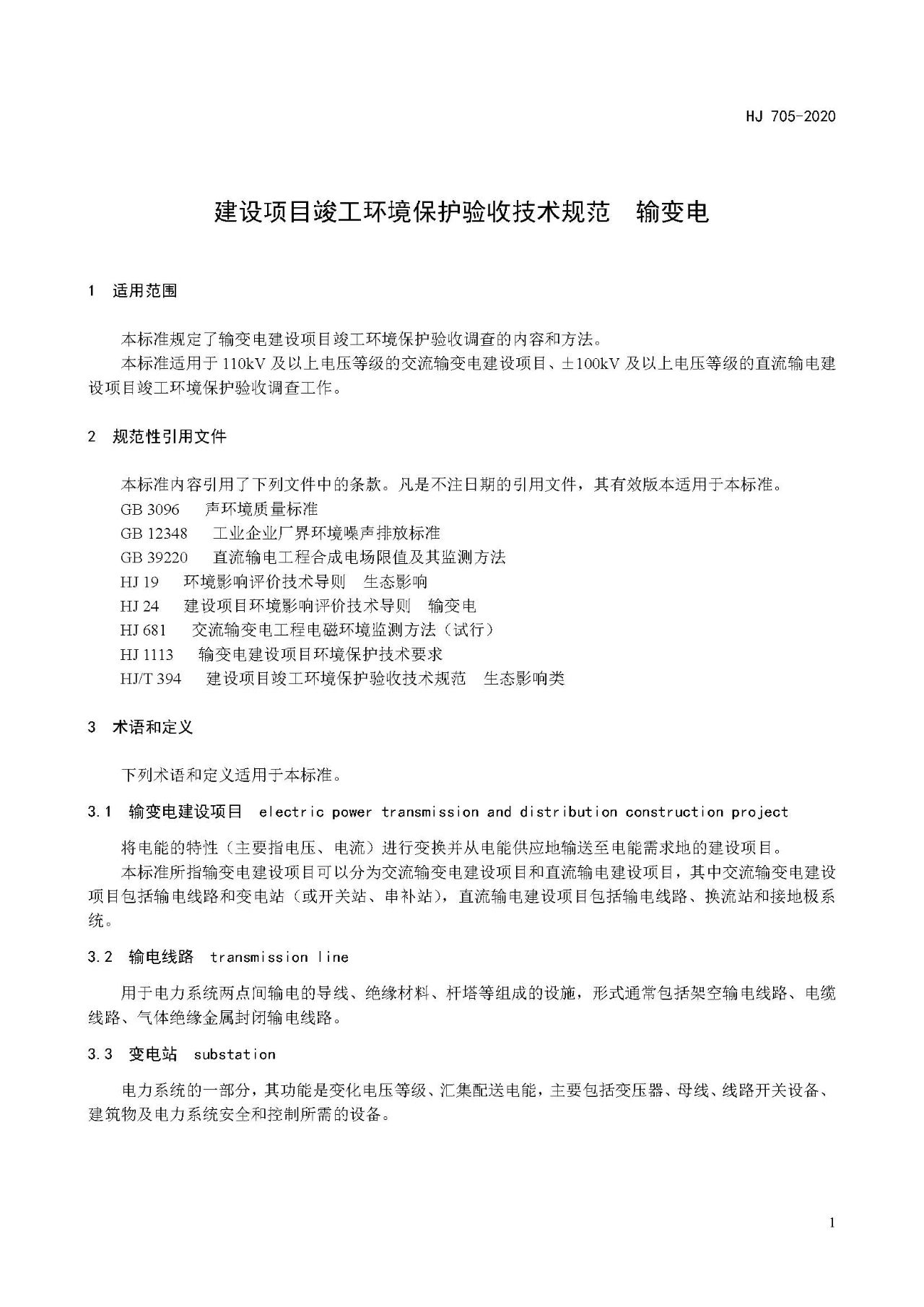 三、《建設(shè)項目竣工環(huán)境保護驗收技術(shù)規(guī)范 輸變電》(HJ 705-2020)