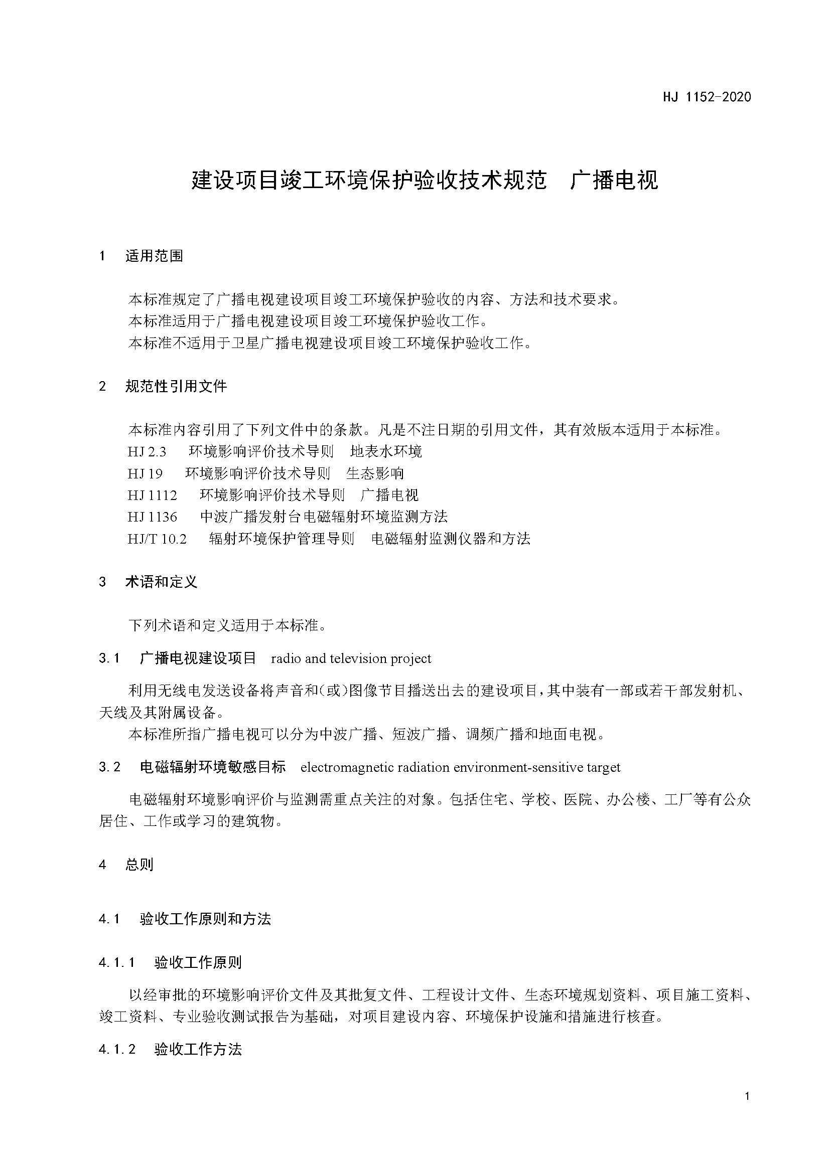 四、《建設(shè)項目竣工環(huán)境保護驗收技術(shù)規(guī)范 廣播電視》(HJ 1152-2020)
