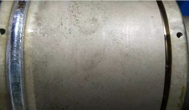 不銹鋼壓力容器焊接實例 直徑為800mm,壁厚為10mm的閃蒸罐,殼體材質(zhì)為0Cr18Ni9。 說明: ① 筒體直徑為800mm,焊工可以鉆進(jìn)筒體內(nèi)焊接,故筒體縱、環(huán)縫故采用焊條電弧焊進(jìn)行雙面焊。 ② 本設(shè)備無人孔,故合攏焊縫只能從外側(cè)焊接。為保證焊接質(zhì)量,采用TIG焊打底。但不銹鋼氬弧焊焊接時背面金屬會被氧化,以前只能通過采用背面充氬保護(hù)的方法,但是當(dāng)設(shè)備較大或背面無法實施氬氣保護(hù)時,將大量浪費氬氣,且仍可能出現(xiàn)保護(hù)不好。為解決這一工藝?yán)щy,日本油脂公司焊接事業(yè)部開發(fā)制造了一種背面自保護(hù)不銹鋼TIG焊絲,這是一種具有特殊涂層的焊絲,涂層(即藥皮)熔化后會滲透到熔池背面,形成一層致密的保護(hù)層,相當(dāng)于焊條藥皮的作用。這用焊絲的使用方法與普通的TIG焊絲完全相同,涂層不會影響正面的電弧和熔池形態(tài),大大降低了不銹鋼氬弧焊的焊接本錢。本設(shè)備中,若采用背面氬氣保護(hù),氬氣浪費嚴(yán)重,故采用了自保護(hù)焊絲。 ③ 接管與平焊法蘭角焊縫、接管與殼體角焊縫,鑒于此部位焊縫外形和焊接條件,一般選用焊條電弧焊。若接管直徑太小,為了減少焊接難度,也可以采用TIG焊。 ④ 支座與殼體焊接角焊縫屬非承壓焊縫,采用熔化極氣體保護(hù)焊(保護(hù)氣體為純CO2),效率高,焊縫成形好。TFW-308L為焊材牌號,其焊材型號為E308LT1-1(AWS A5.22)。