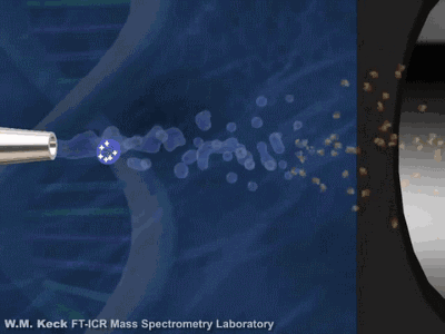 FT-ICR質(zhì)譜的分析器是一個(gè)具有均勻(超導(dǎo))磁場(chǎng)的空腔,離子在垂直于磁場(chǎng)的圓形軌道上作回旋運(yùn)動(dòng),回旋頻率僅與磁場(chǎng)強(qiáng)度和離子的質(zhì)荷比有關(guān),因此可以分離不同質(zhì)荷比的離子,并得到質(zhì)荷比相關(guān)的圖譜。