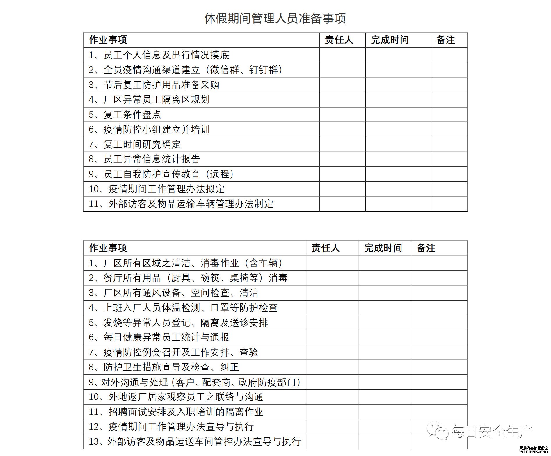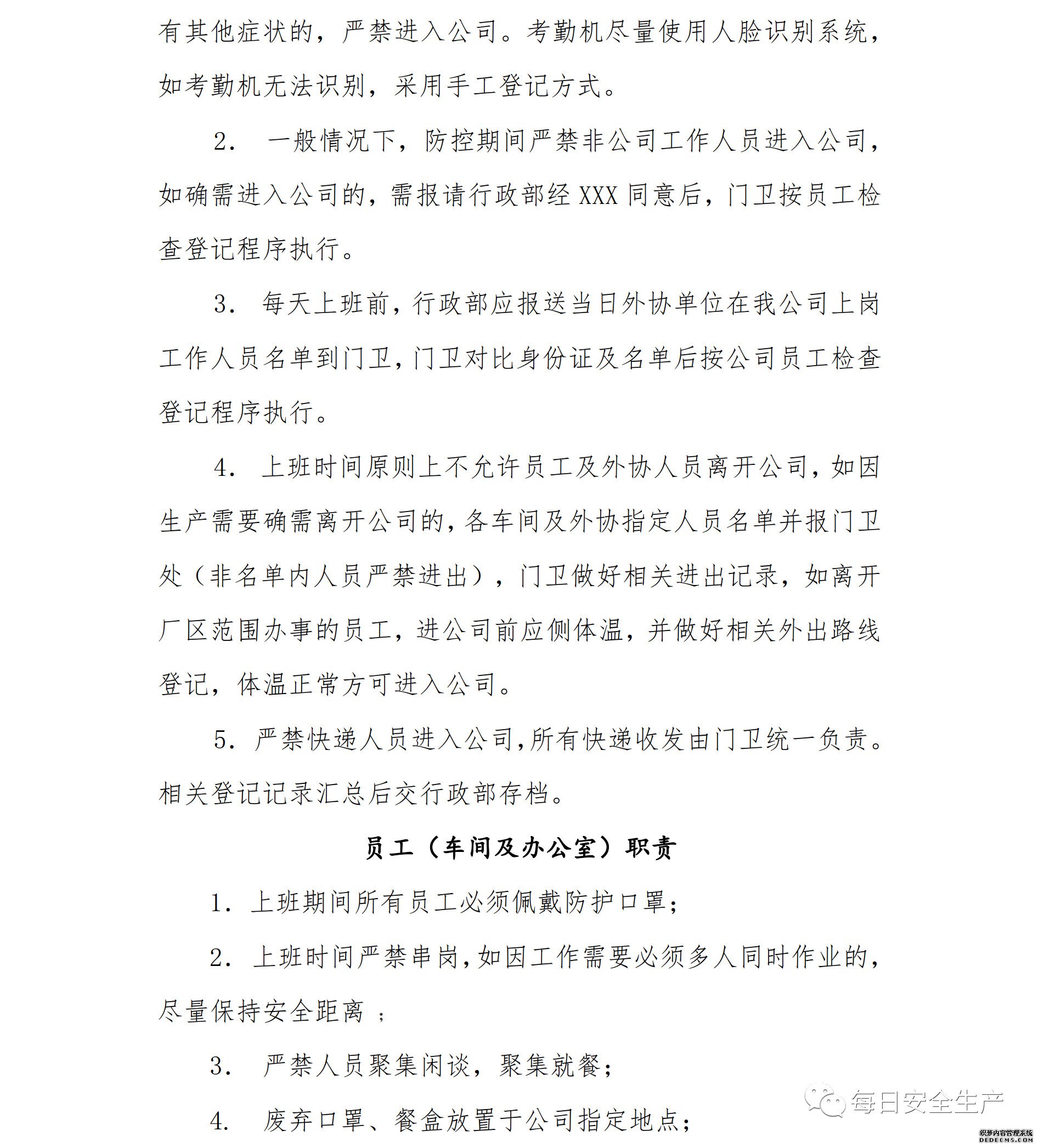 ② 必須制定企業(yè)疫情防控工作方案和復工生產(chǎn)實施方案;