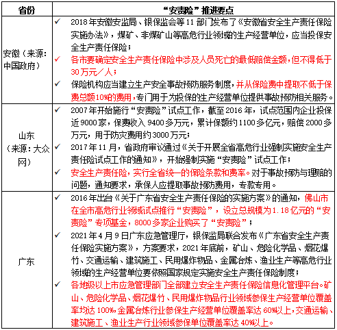 地方政府對“安責險”的實施高度重視。據(jù)調查,已有超過30個省、自治區(qū)、直轄市出臺了關于“安責險”實施意見或采取了有效措施,組織投保企業(yè)的數(shù)量不斷增加,專項資金、保險費用、保障額度規(guī)模不斷擴大。