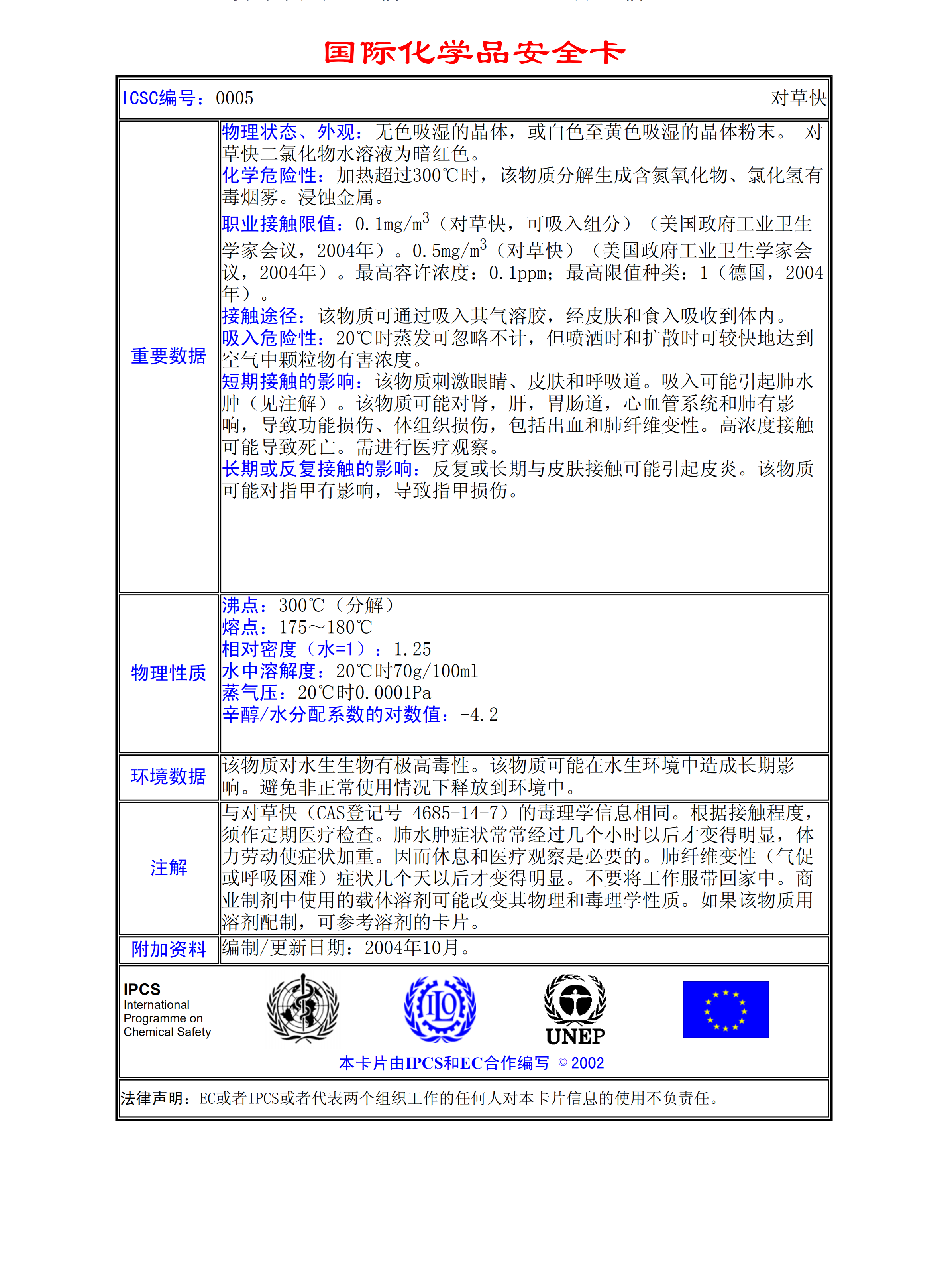 對(duì)草快二氯化物MSDS