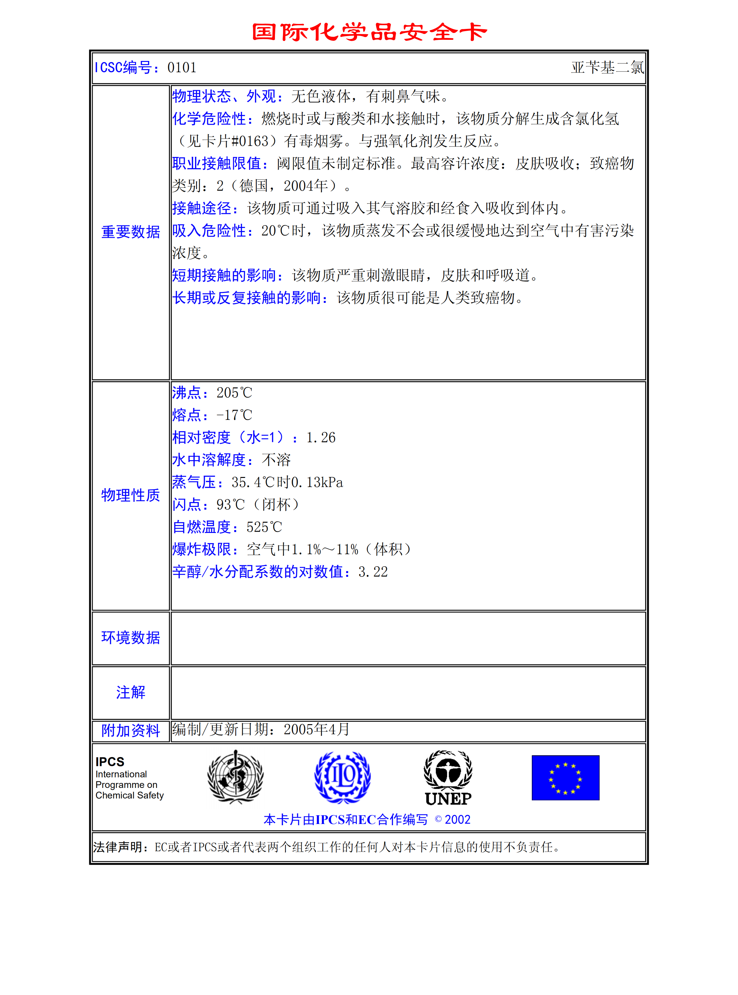 亞芐基二氯MSDS