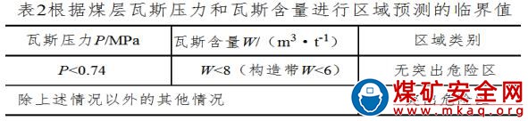 (1)區(qū)域突出危險性預(yù)測采用直接測定法測定煤層瓦斯含量 W 和煤層瓦斯壓力 P,由鉆機(jī)隊(duì)施工 4 個預(yù)測孔,防突工負(fù)責(zé)現(xiàn)場監(jiān)督、采集數(shù)據(jù),出具突出危險性預(yù)測報(bào)告單,經(jīng)防突隊(duì)、科、礦有關(guān)領(lǐng)導(dǎo)審核簽字確認(rèn)后執(zhí)行區(qū)域防突措施。