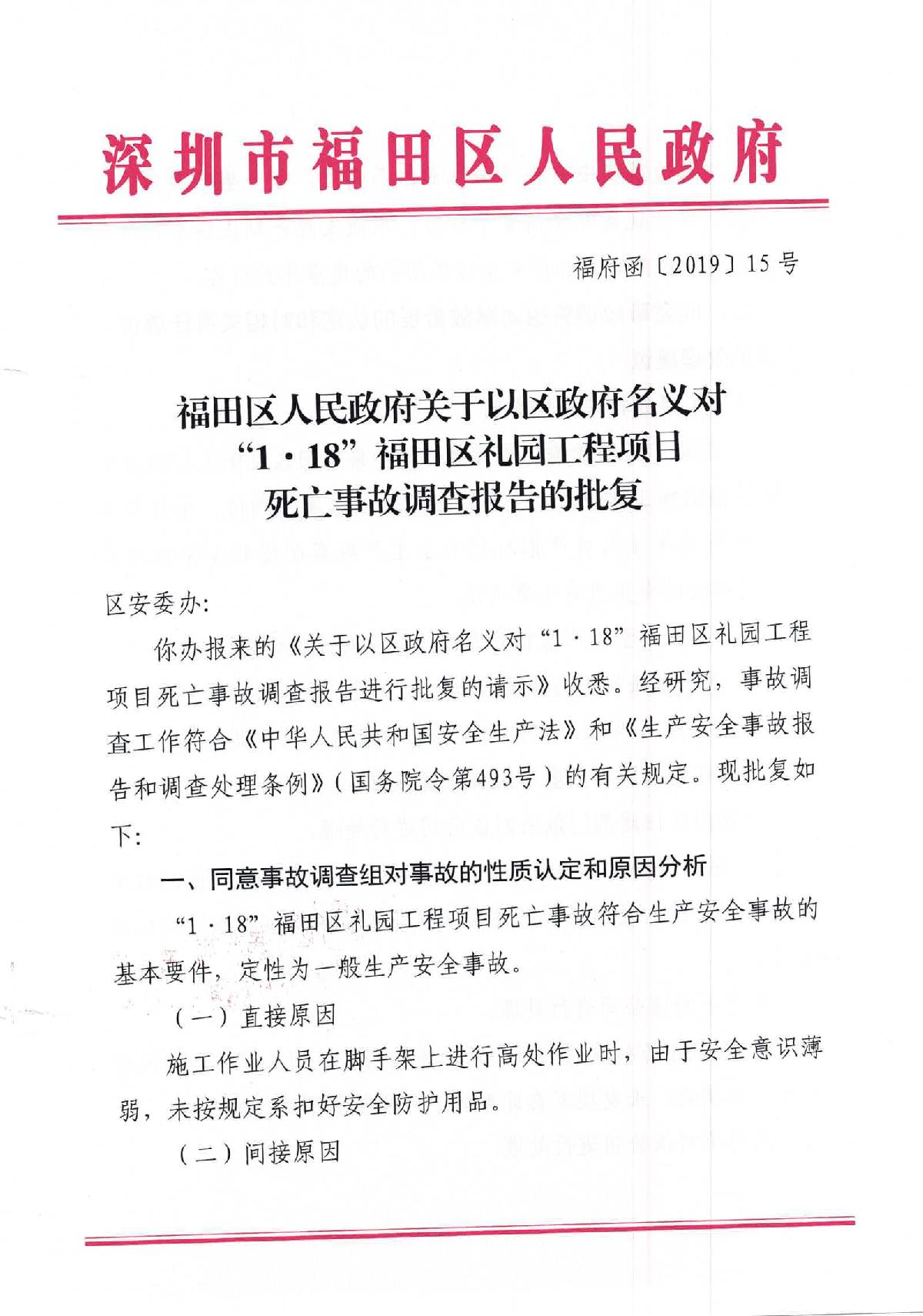 “1.18”福田區(qū)禮園工程項目死亡事故調(diào)查報告