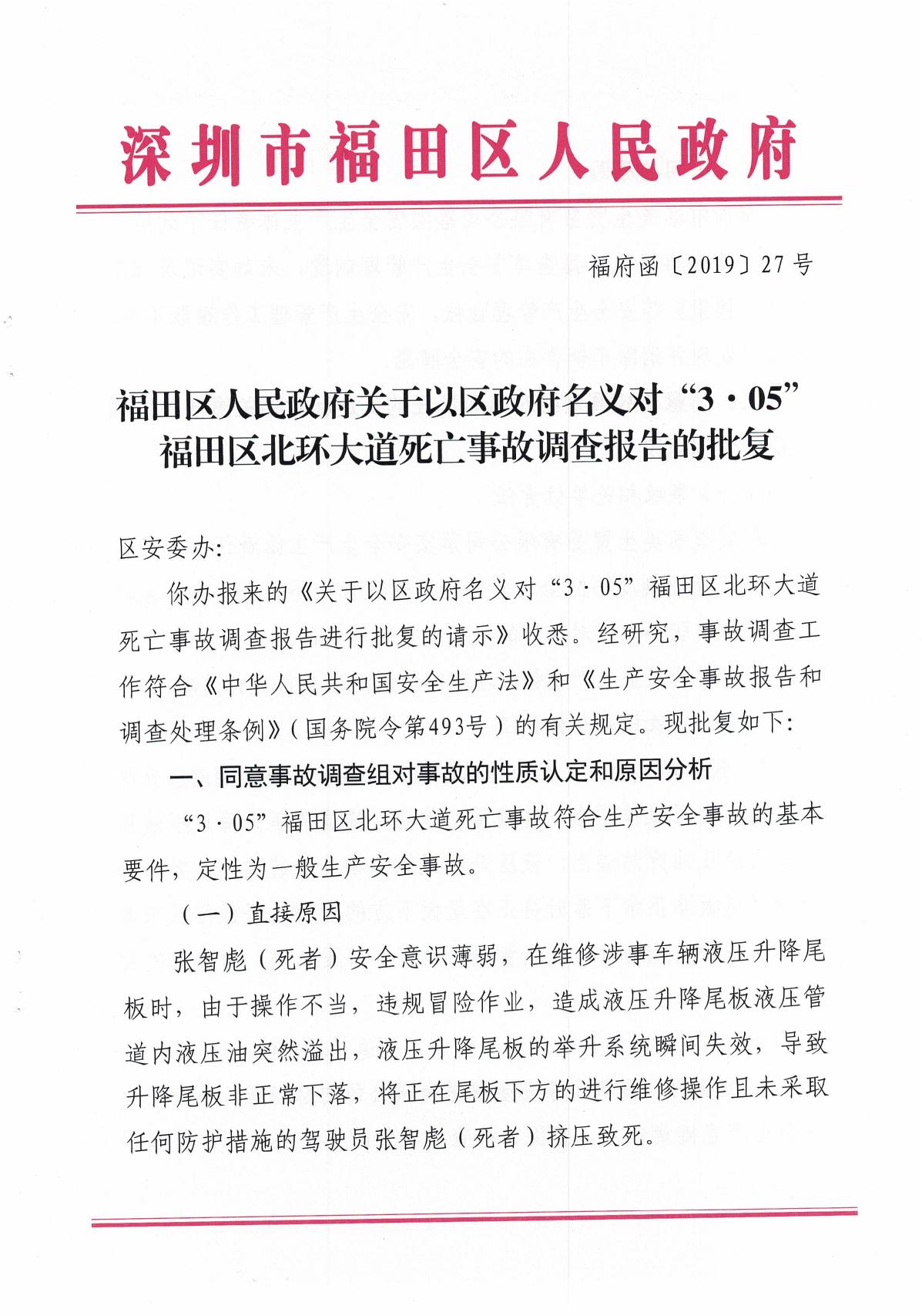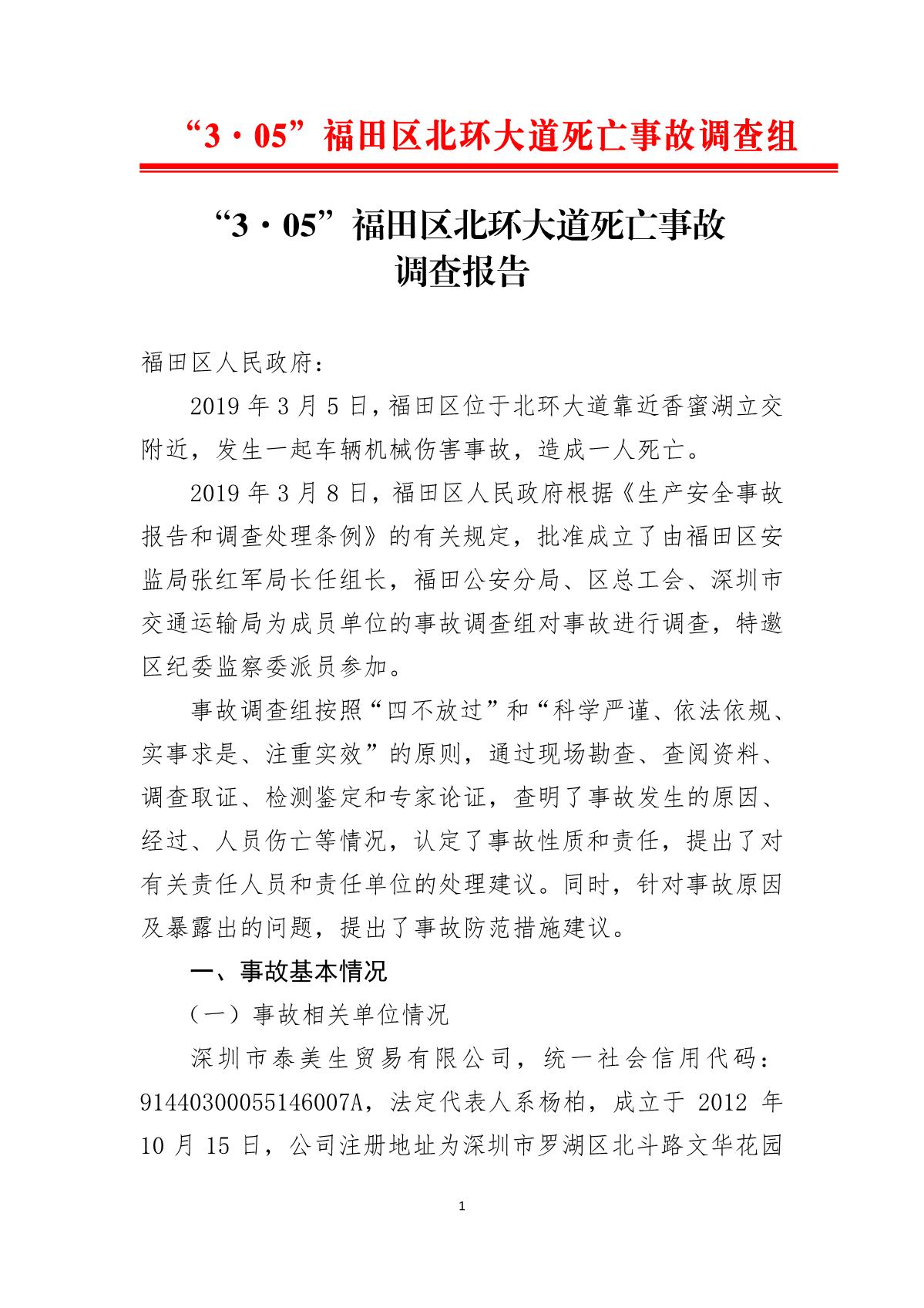“3.05”福田區(qū)北環(huán)大道死亡事故調查報告