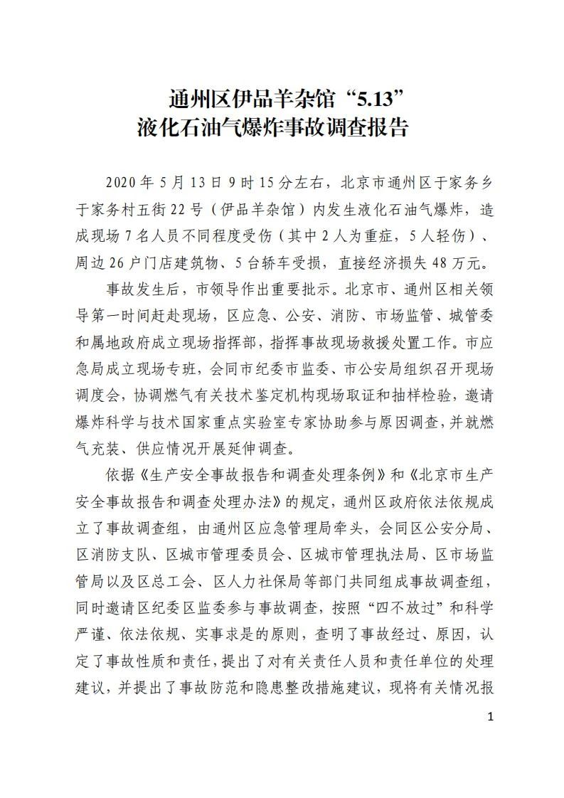 造成7人受傷,26戶(hù)建筑物、5輛汽車(chē)受損的北京市通州區(qū)伊品羊雜館“5.13”液化石油氣爆炸事故調(diào)查報(bào)告,來(lái)了!