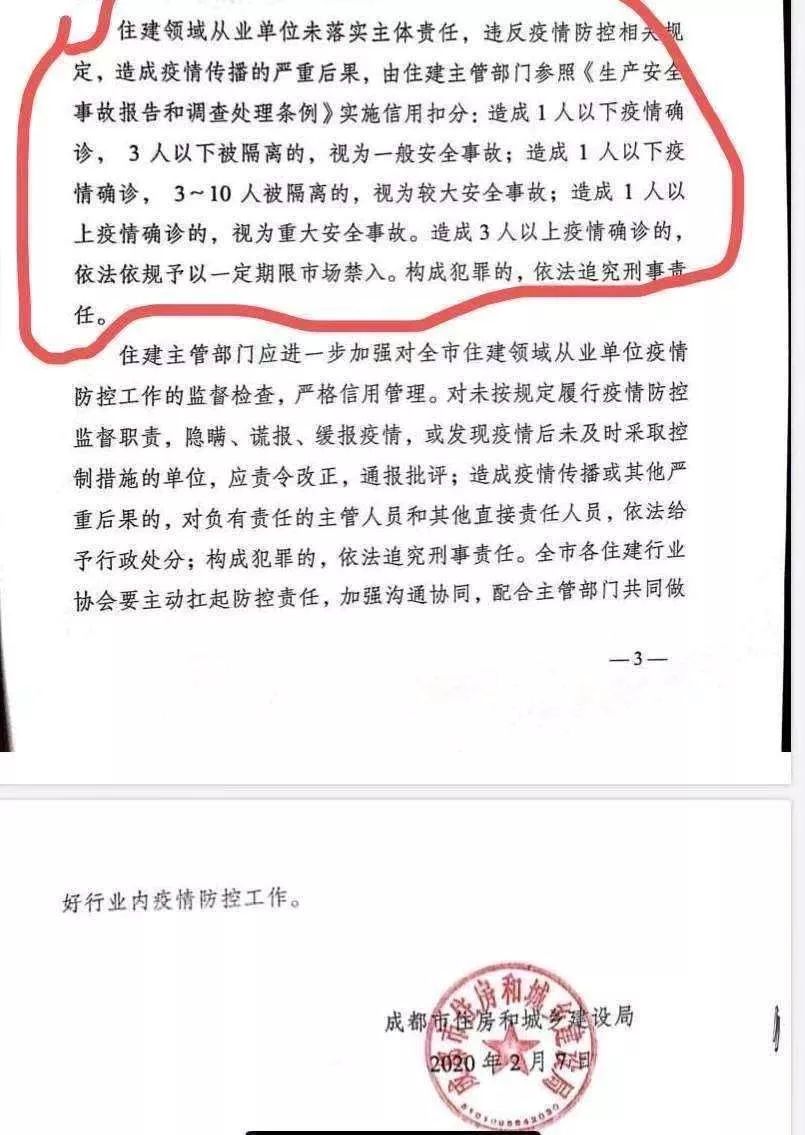2月7日,成都市住房和城鄉(xiāng)建設(shè)局發(fā)布了《關(guān)于將新型冠狀病毒感染的肺炎疫情防控工作納入住建領(lǐng)域市場主體信用評價(jià)管理的通知》。