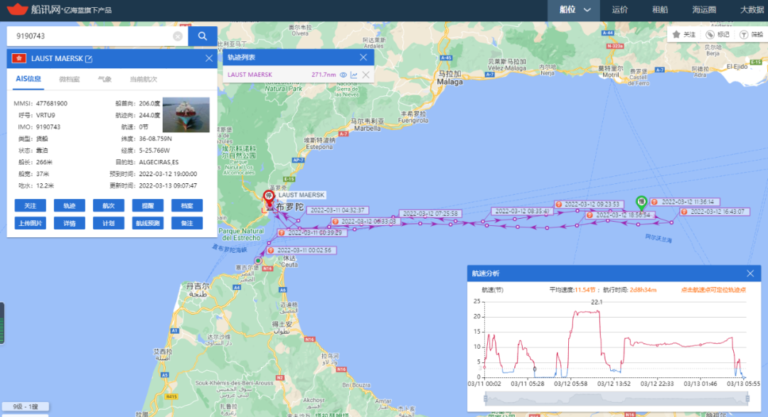 據(jù)西班牙當?shù)孛襟w報道,當?shù)貢r間昨天(周六),馬士基旗下一艘名為Laust Maersk 的集裝箱船舶離開阿爾赫西拉斯港后,在阿爾博蘭海 水域,與西班牙馬拉加東南約 53 海里處與一艘名為NAPOLES的渡輪發(fā)生碰撞。