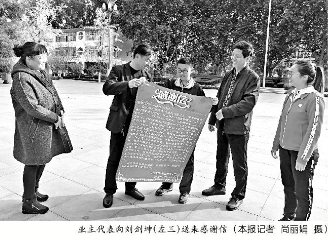 本報(bào)訊 (記者 尚麗娟)11月1日,家住北辰家園7號(hào)樓的10多名業(yè)主代表來到市一中送感謝信,感謝該校高三(9)班學(xué)生劉劍坤及時(shí)發(fā)現(xiàn)鄰居天然氣泄漏后報(bào)警,并幫助疏散鄰居,引導(dǎo)消防員搶險(xiǎn),避免了更大災(zāi)難的發(fā)生。