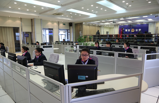 (海安公安110指揮中心值班室大廳全景)
