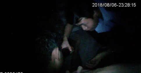 (圖為民警符亞軍對(duì)男子進(jìn)行喂水施救。警方供圖)