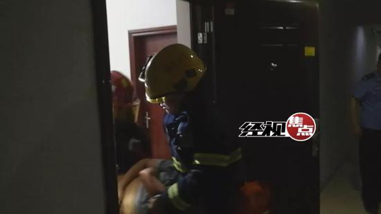 四分鐘后大門被破開,房間彌漫大量燃?xì)猓狸?duì)員丁煥章立即沖了進(jìn)去,他在廚房找到了被困的女業(yè)主。