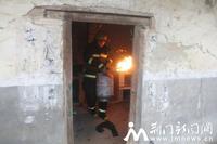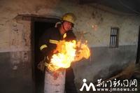 8時30分,消防官兵到達(dá)現(xiàn)場,據(jù)現(xiàn)場偵察情況發(fā)現(xiàn),房屋內(nèi)一煤氣罐正向外噴射火焰,引燃了灶臺上的許多物品,煤氣罐隨時可能發(fā)生爆炸,造成人員傷亡,情況十分危急。消防戰(zhàn)斗員慕晨曦沒有絲毫猶豫,立即將手套打濕,一把抱起著火的煤氣罐就往外跑。屋外正飄著小雨、刮著風(fēng),雖然戴著消防頭盔,可火焰擦過,還是燙紅了他的臉龐。小跑至空曠地帶后,慕晨曦才將煤氣罐放下,消防官兵們連忙對罐身噴水降溫,并用濕抹布蓋滅火焰,關(guān)閉閥門。在撲滅屋內(nèi)殘火并確認(rèn)煤氣罐無復(fù)燃可能后,消防官兵收整器材返回。